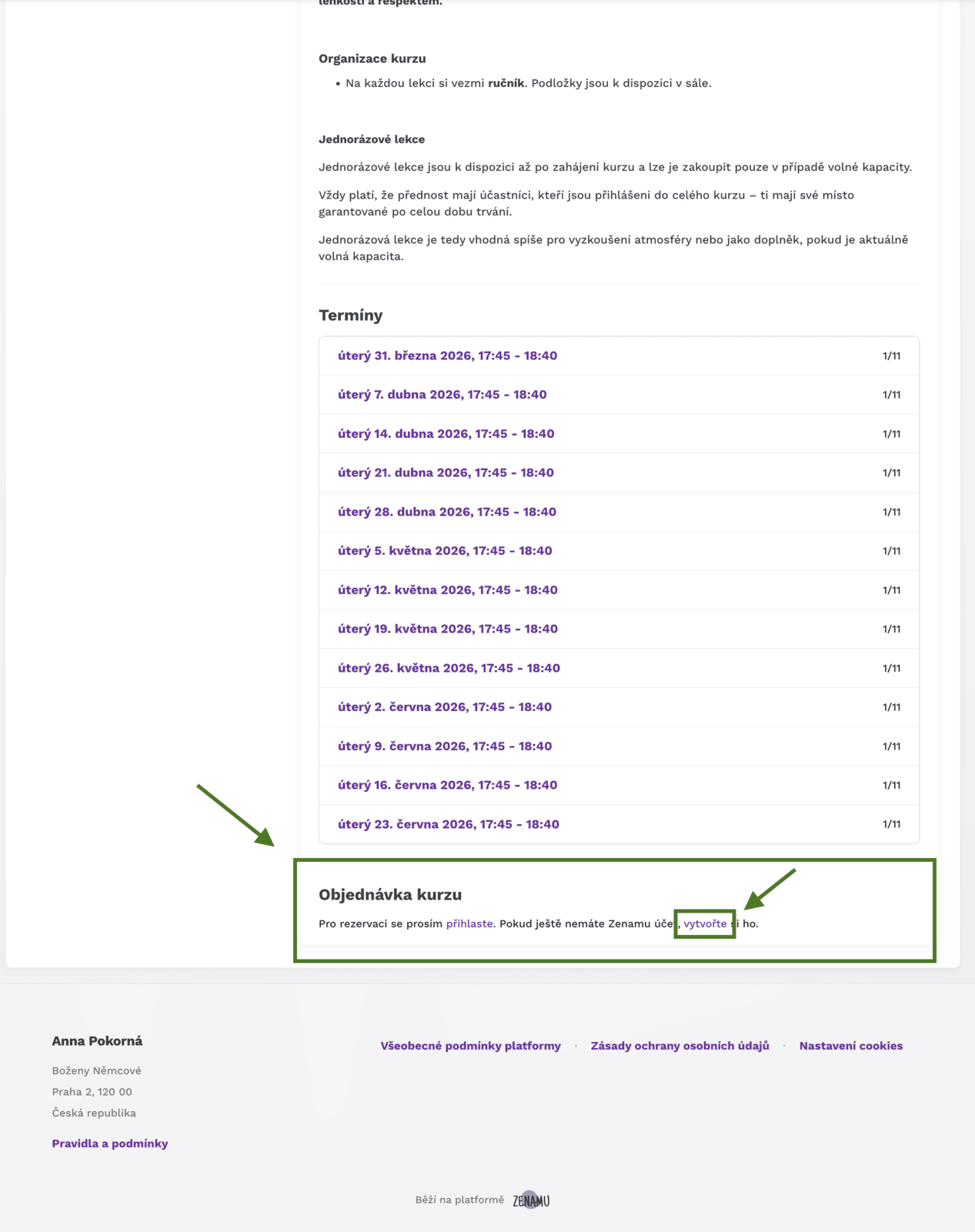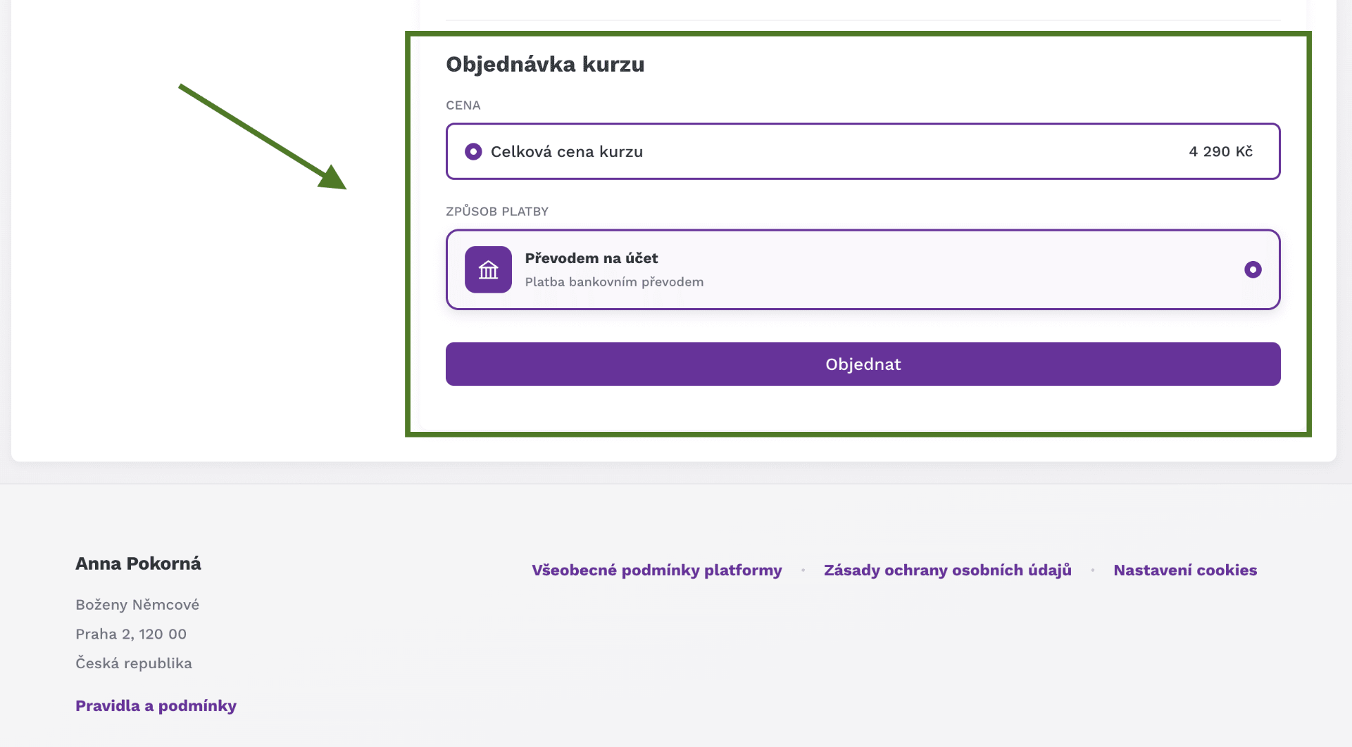 5. Sjeď dolu na část "Objednávka kurzu"