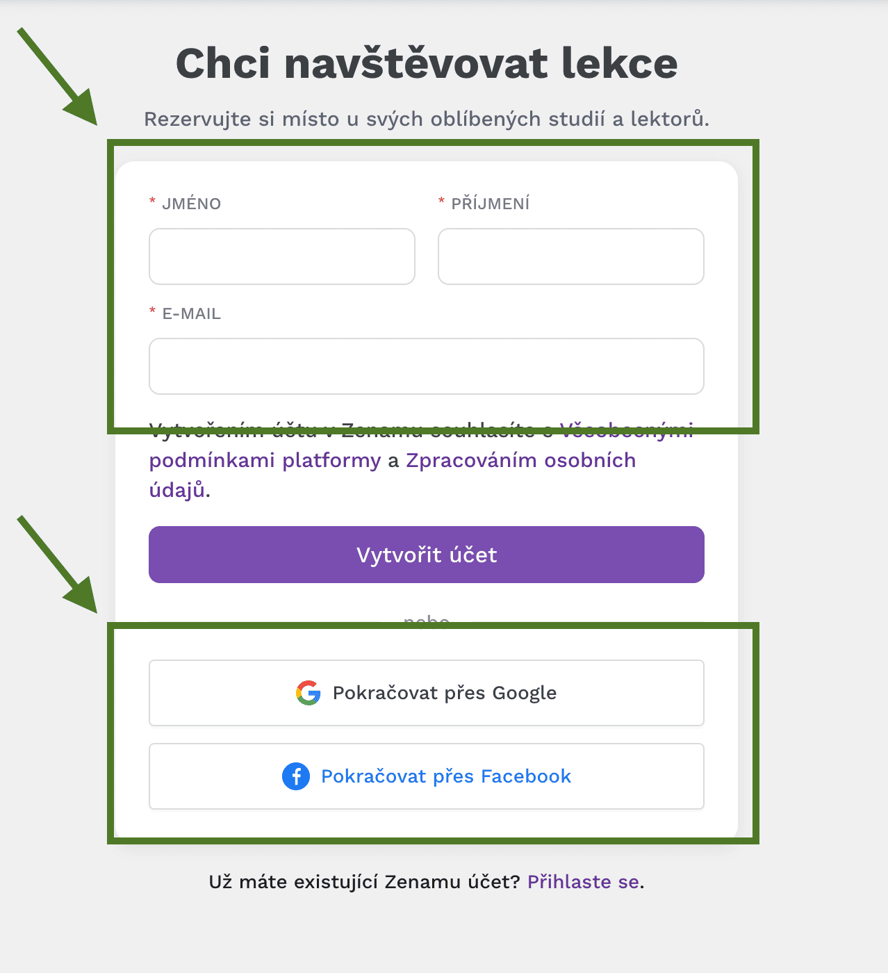 8. Pokud chceš můžeš k přihlášení využít váš google nebo facebook účet.