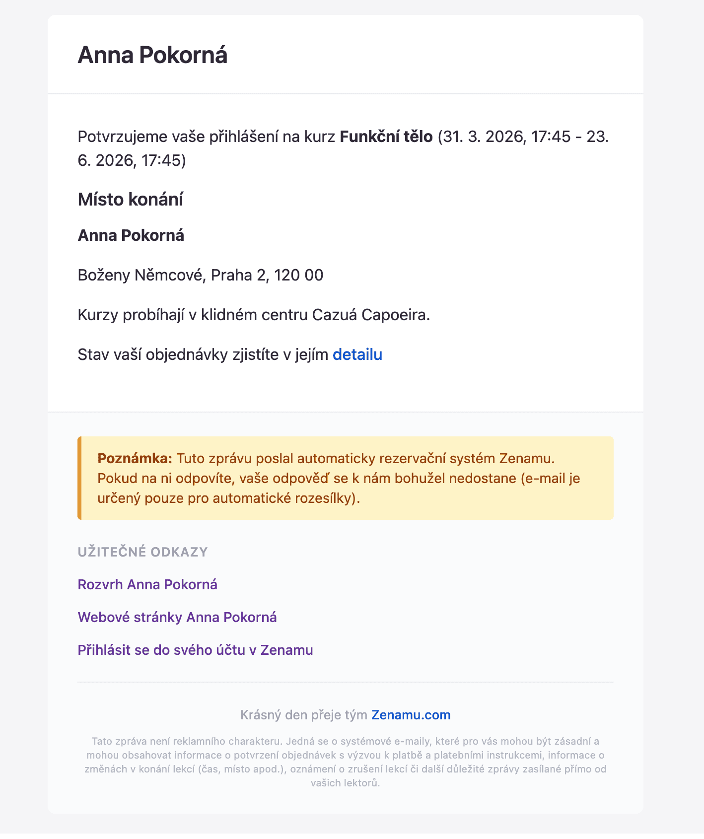 11. Po objednání vám přijde potvrzení vašeho kurzu do e-mailu.